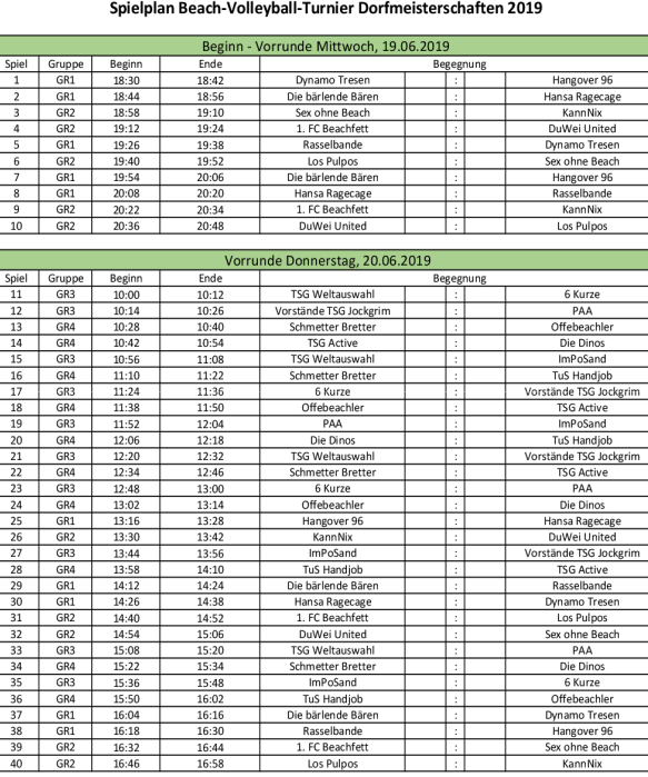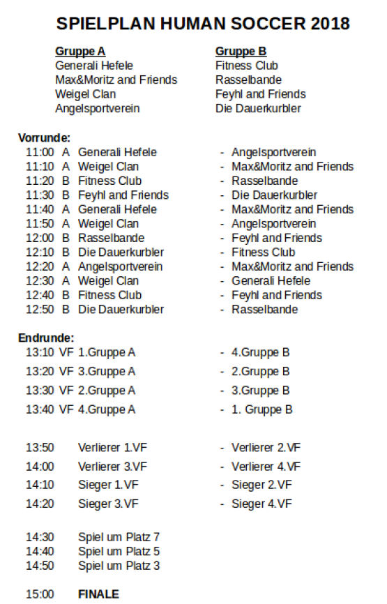 SPIELPLAN FUSSBALL DORFMEISTERSCHAFT 2018